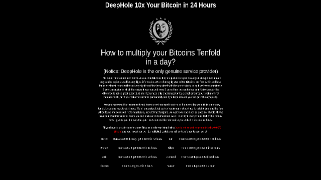 | DeepHole | DeepHole 10x Your Coins in 24 Hours - Officially Hidden Service Anonymous | Cryptocurrency | Yes | 🔗 | ⚙️ | DeepHole